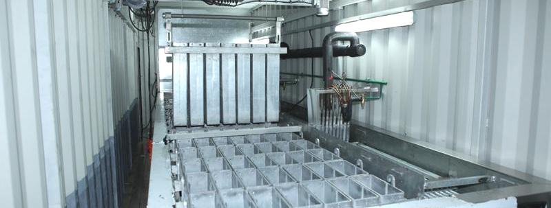 集装箱式冰砖机,也是盐水制冰式块冰机的一种形式,直接把冰砖机安装在集装箱内,移动灵活,安全可靠,可用卡车和轮船运输,无建筑要求,直接放置在夯实的地面就可以满足要求,具有最短的工地现场安装和调试时间,降低了客户的运输、安装成本和风险。