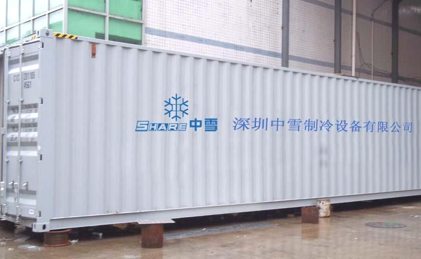 中雪集装箱式块冰机,采用符合国际运输标准的集装箱为主体,采用40尺柜最大日产冰量为10吨,20尺柜最大日产量可达5吨。一般将主机、盐水池、融冰、倒冰、吊车、注水集为一体,安装,运输,制冰方便。